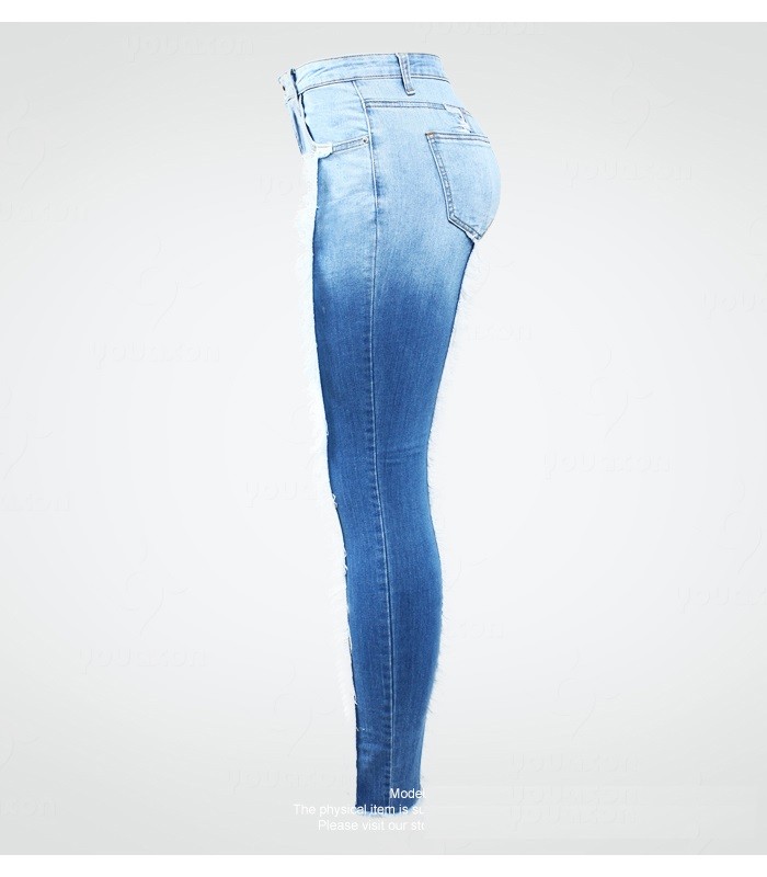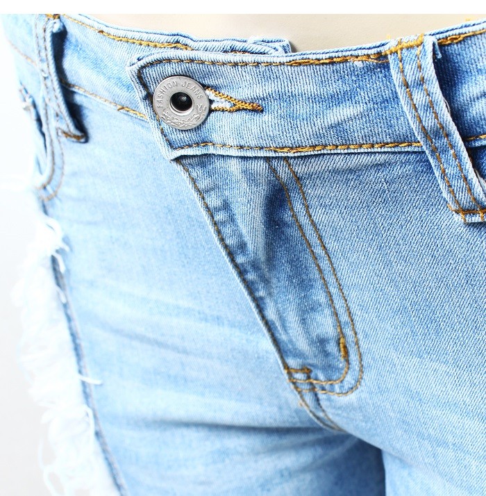 Buďte stilosa con questi jeans con frange bianche sulla parte anteriore e posteriore dei jeans.