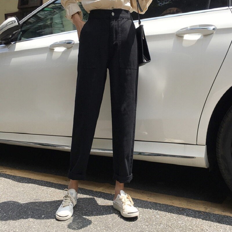 Jeans neri larghi da donna