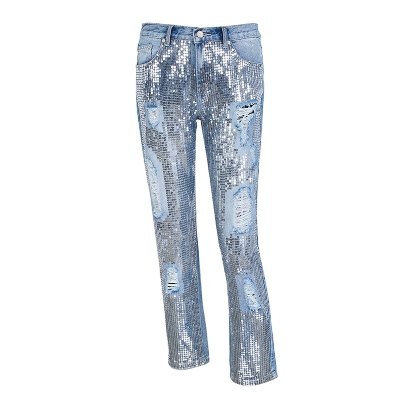 Jeans strappati da donna con paillettes