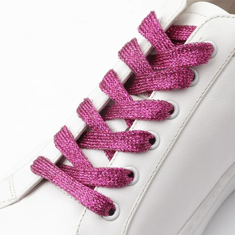 Lacci piatti scintillanti lunghi 140 cm daranno alle sneakers un tocco di stile. Perfetti per calzature alte, streetwear e combinazioni di moda originali. Descrizione completa