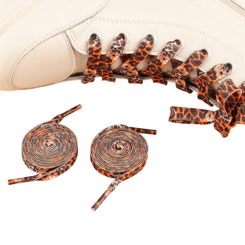 1× paio di lacci piatti in nylon con motivo leopardato (2 pezzi)