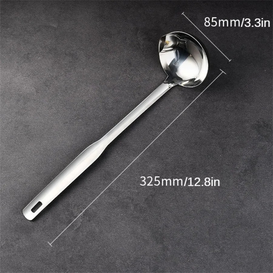 Ladle in acciaio inox con beccuccio 32,5 x 8,5 cm Ladle lucida per zuppe e oli Cucchiaio resistente per cucina Utensile da servizio in acciaio
