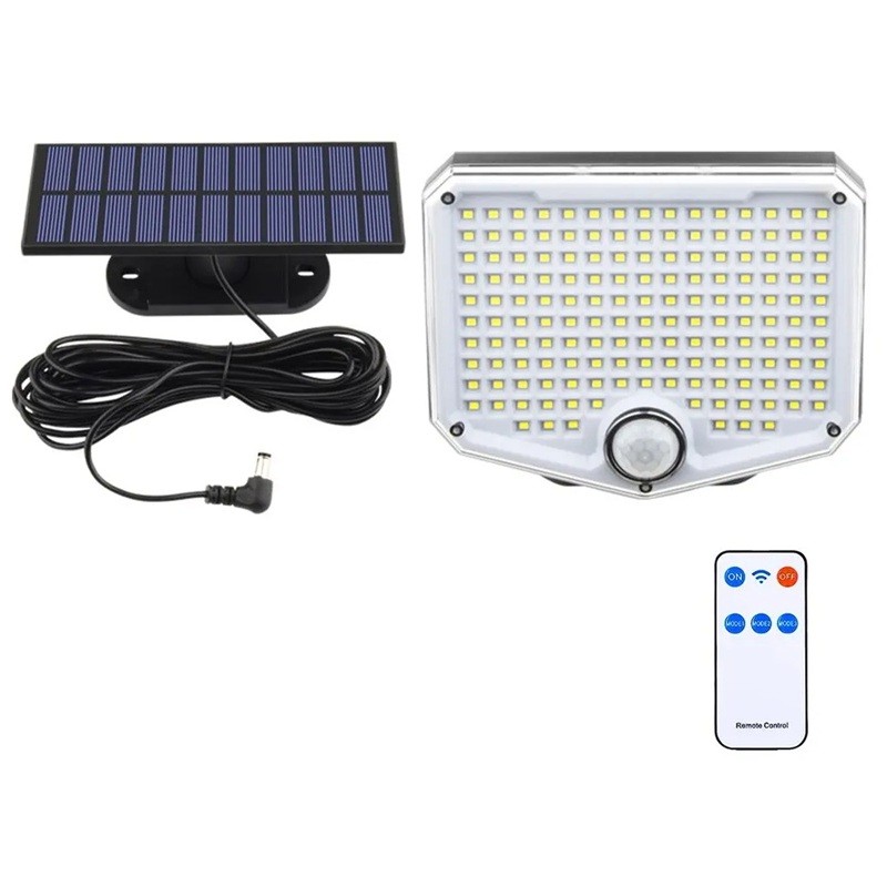 Lampada da parete solare da esterno 153 LED con sensore di movimento Telecomando 3 modalità IP65 luce bianca Illuminazione di sicurezza