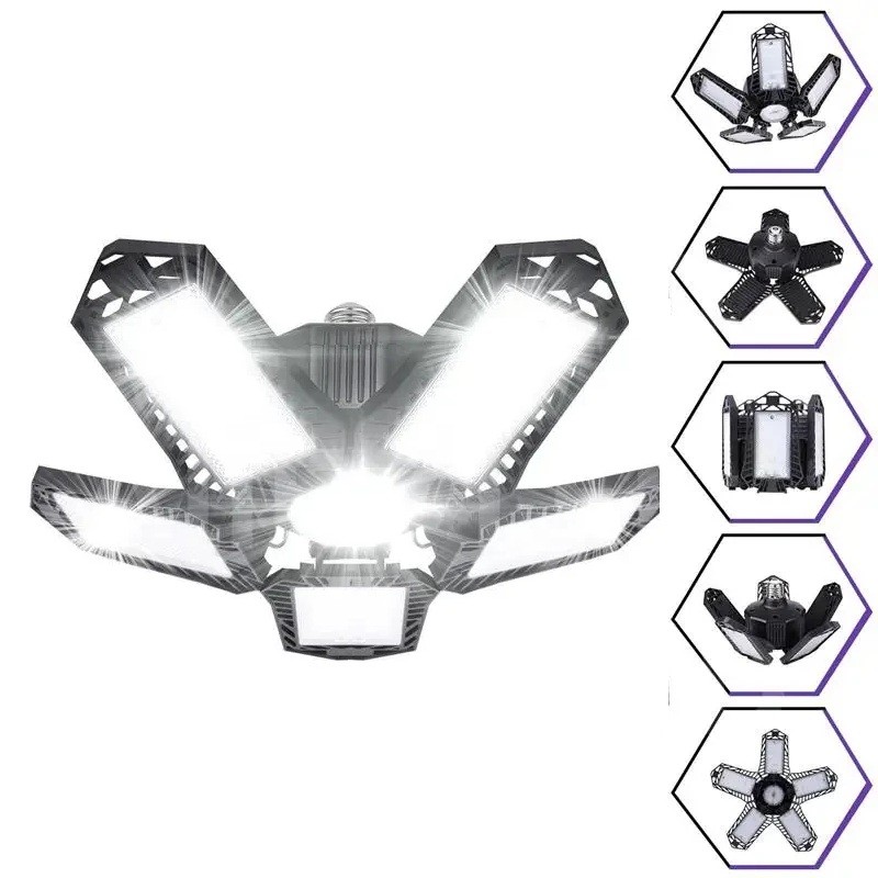 Lampada da soffitto LED pieghevole per garage 80W E27 Illuminazione regolabile con 5 pannelli Luce calda super luminosa per officina