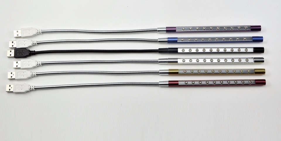 La lampada portatile USB per laptop ha un collo flessibile e regolabile, realizzato in metallo.