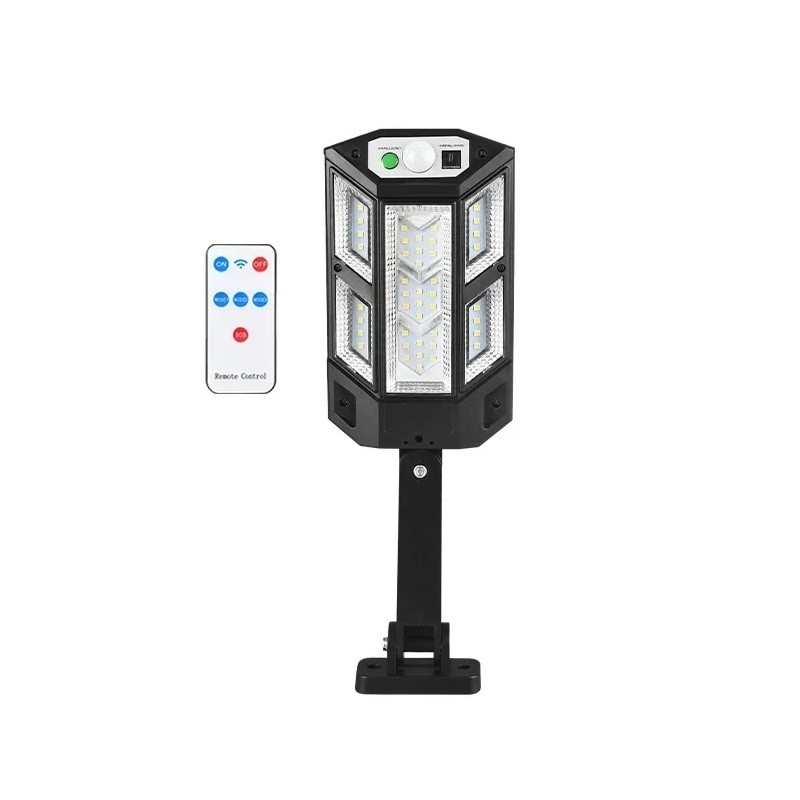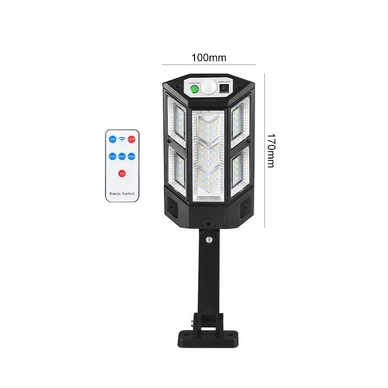 Lampada solare da esterno con sensore di movimento, tre modalità e telecomando. Impermeabile IP65, ideale per casa, ingresso, cortile o terrazza. Descrizione completa
