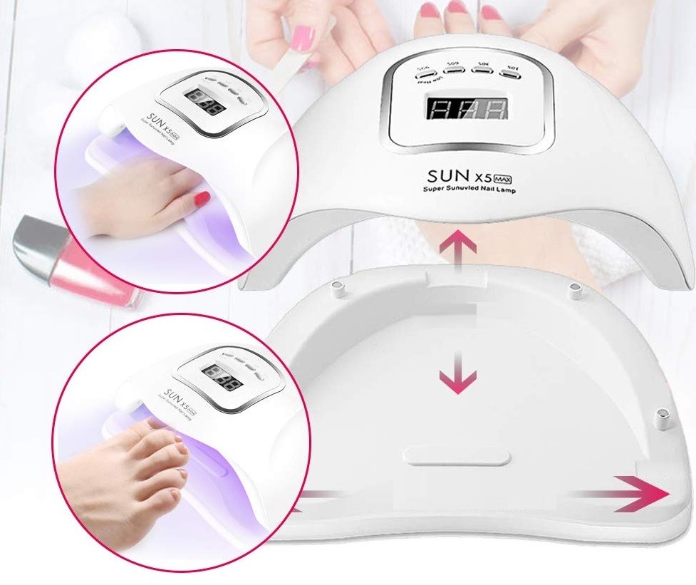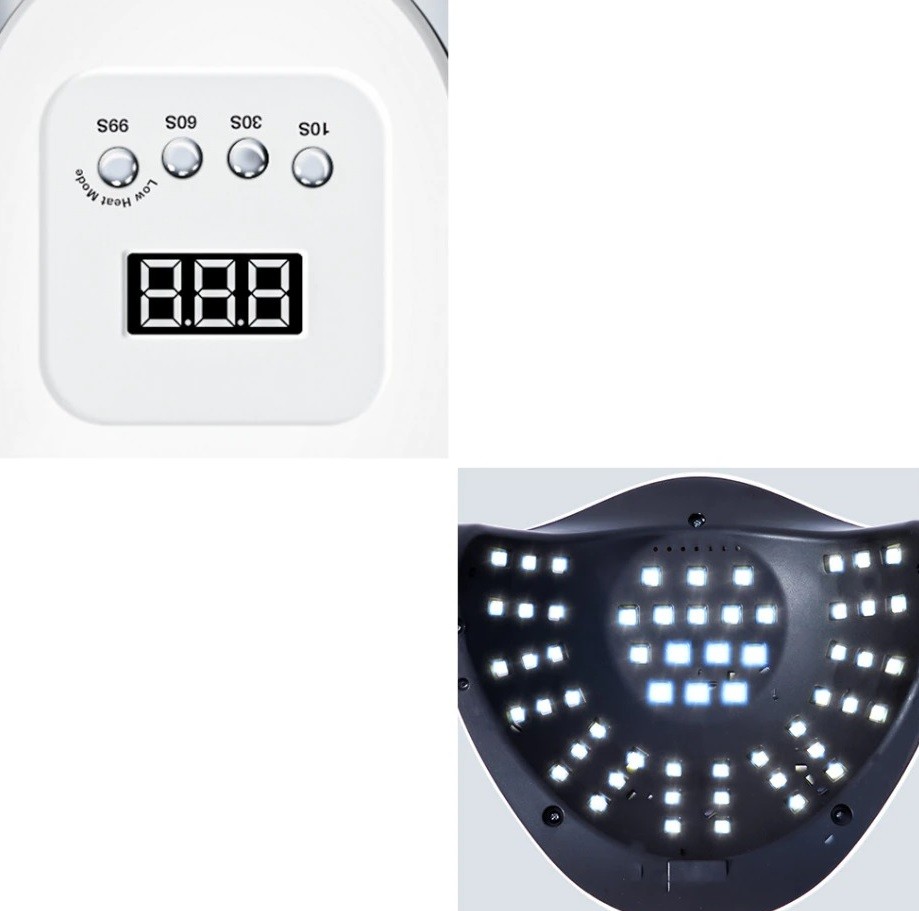 Con questa lampada UV/LED riuscirai a indurire le unghie in gel in soli 10 secondi. 45 LED in questa lampada garantiscono un indurimento rapido e professionale. Inoltre, la lampada è dotata di un timer integrato con diverse modalità. Il tempo è visualizzato su un display LCD sulla lampada. Adatta sia per uso domestico che per il tuo studio di unghie. L'alimentazione avviene tramite rete elettrica. Dotata di sensore di movimento - si accende all'inserimento della mano e si spegne al suo ritiro. Adatta anche per la cura delle unghie dei piedi.