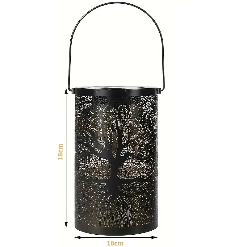 Lanterna solare in metallo 18 x 10 cm Lampada LED da esterno sospesa Decorazione impermeabile per giardino Ombra a forma di albero Illuminazione notturna