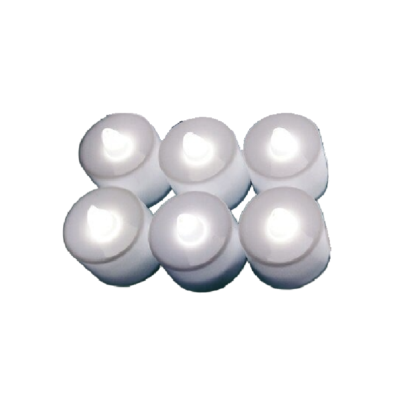Set di 6 candele elettriche. Sicure. Dimensioni: 3,5 x 4,4 cm. Descrizione completa