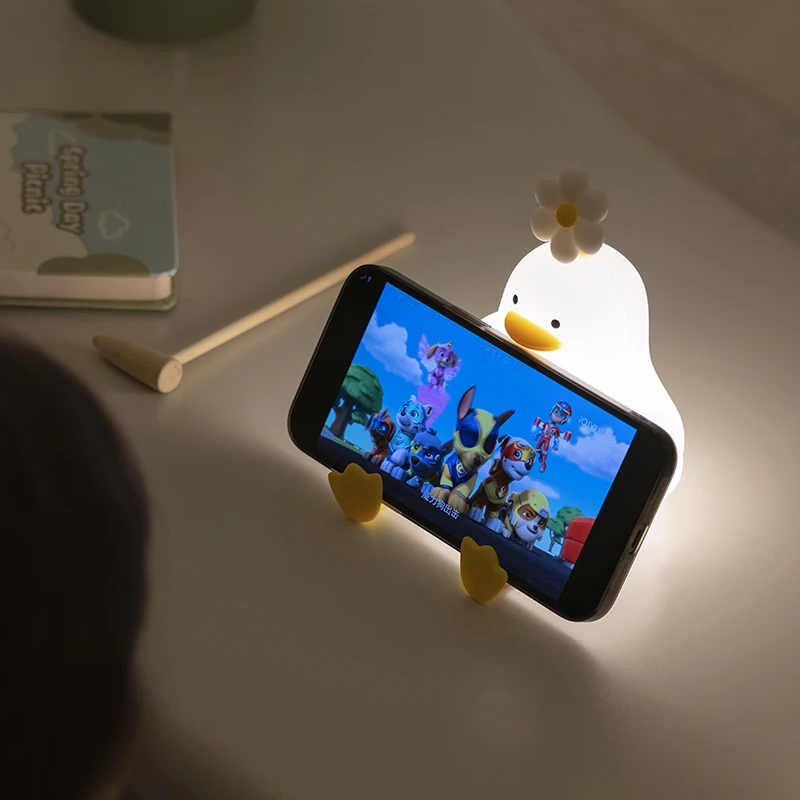 Questa carina luce notturna a forma di anatra in silicone morbido illuminerà ogni cameretta e comodino. Grazie alla batteria ricaricabile da 1200mAh e alla pratica alimentazione USB, puoi caricarla comodamente e utilizzarla senza limitazioni di cavi. La delicata luce LED è gentile per gli occhi e crea un'atmosfera piacevole, ideale per addormentarsi o per orientarsi di notte. Il controllo touch consente di accendere e spegnere facilmente anche per i bambini piccoli. Le dimensioni compatte di 11 x 13 x 14 cm si adattano ovunque.