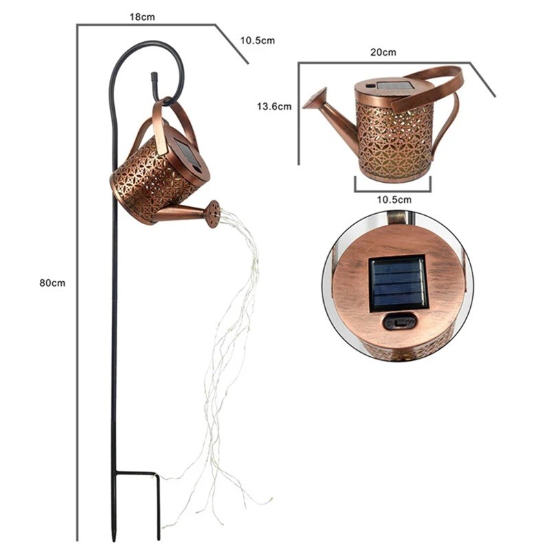 Questa originale decorazione sospesa a forma di annaffiatoio trasformerà qualsiasi spazio esterno in un luogo magico. Ideale per cene serali, feste in giardino e relax all'aperto. Grazie al modo automatico di accensione e spegnimento non dovrai preoccuparti di nulla. Il design in stile vintage si adatta a qualsiasi ambiente e rimane comunque inconfondibile. Fai brillare il tuo giardino giorno e notte con questa luce unica.