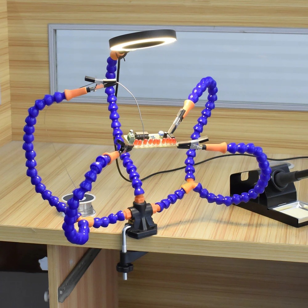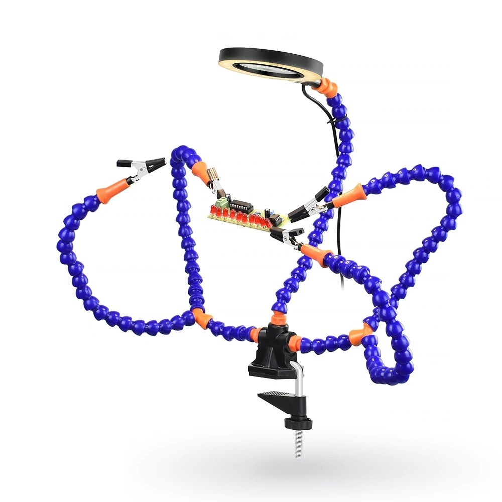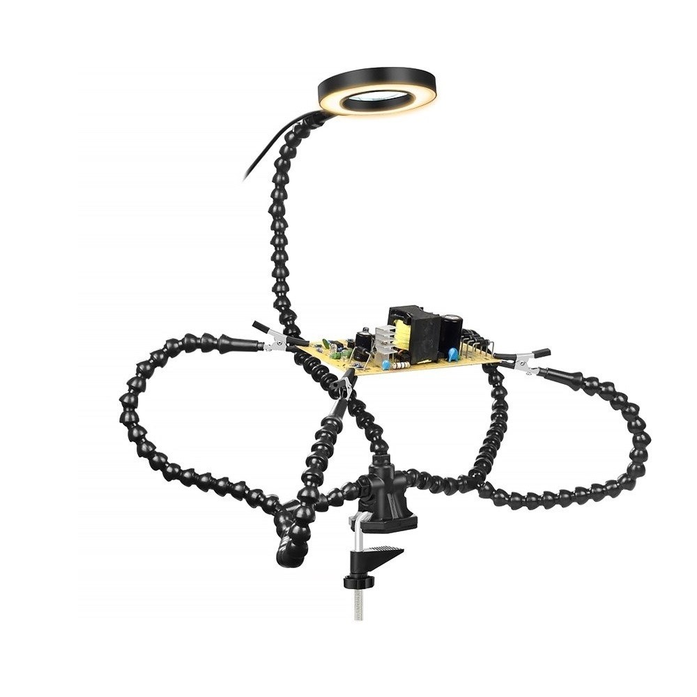 Questa lente con bracci ausiliari sarà un aiuto ideale per la saldatura e la riparazione di piccoli oggetti. I bracci ausiliari ti permetteranno di avere le mani libere, rendendo così il tuo lavoro più comodo e preciso. L'intensità dell'illuminazione LED può essere regolata secondo necessità, grazie a 10 livelli di luminosità.