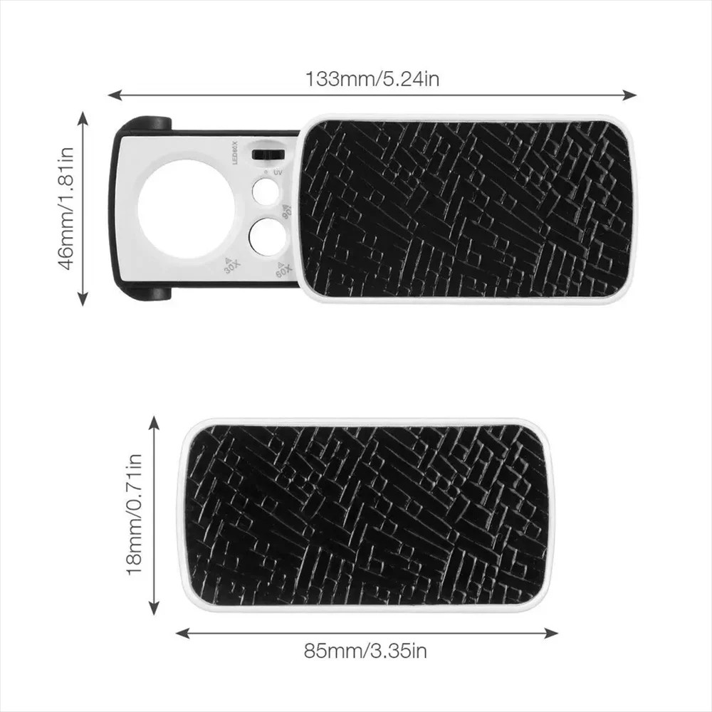 Lente pieghevole con illuminazione LED e luce UV 30x 60x 90x ingrandimento Lente portatile per gioielli Monete Banconote Francobolli