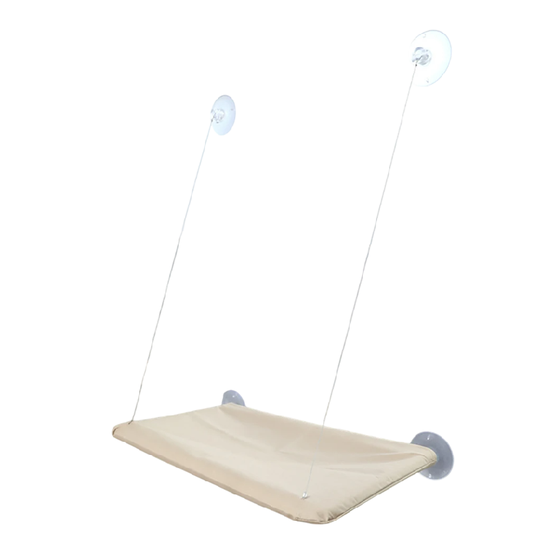 Pratico letto per gatti da finestra con ventose e corde, ideale per prendere il sole, avere una vista e riposare senza occupare spazio in casa. Descrizione completa