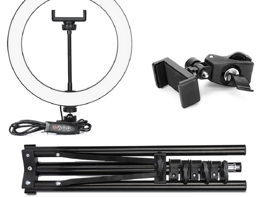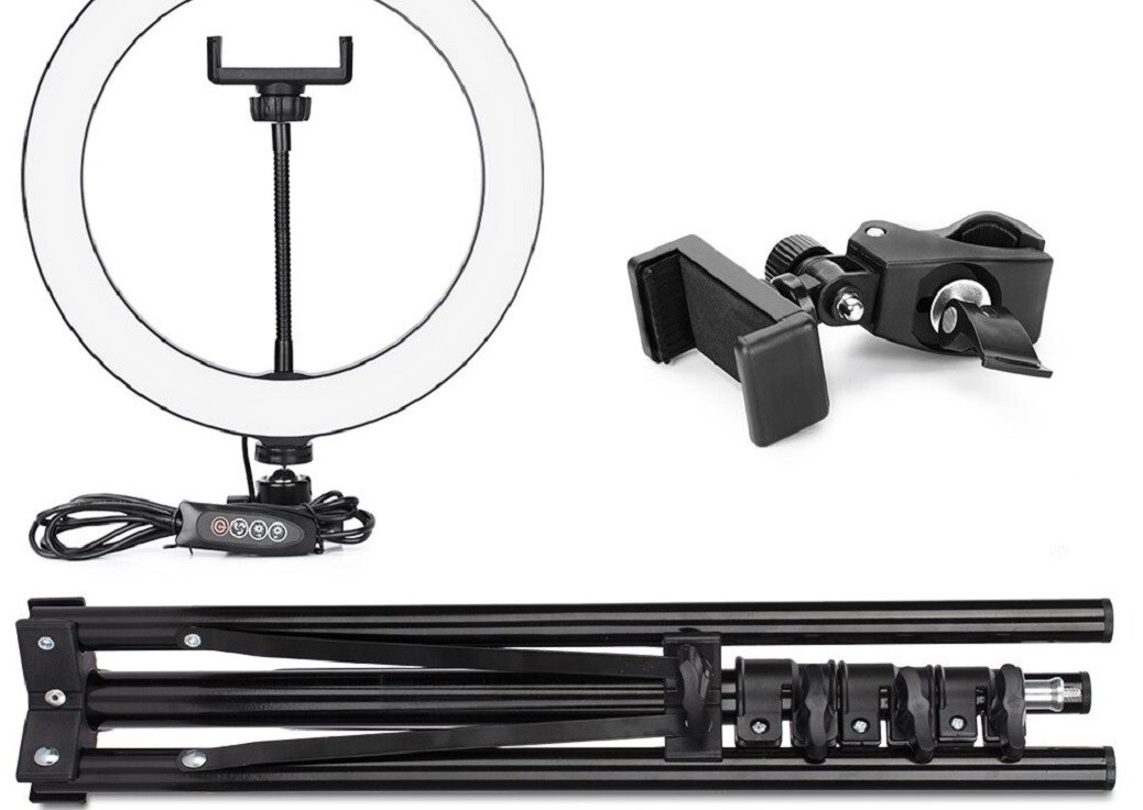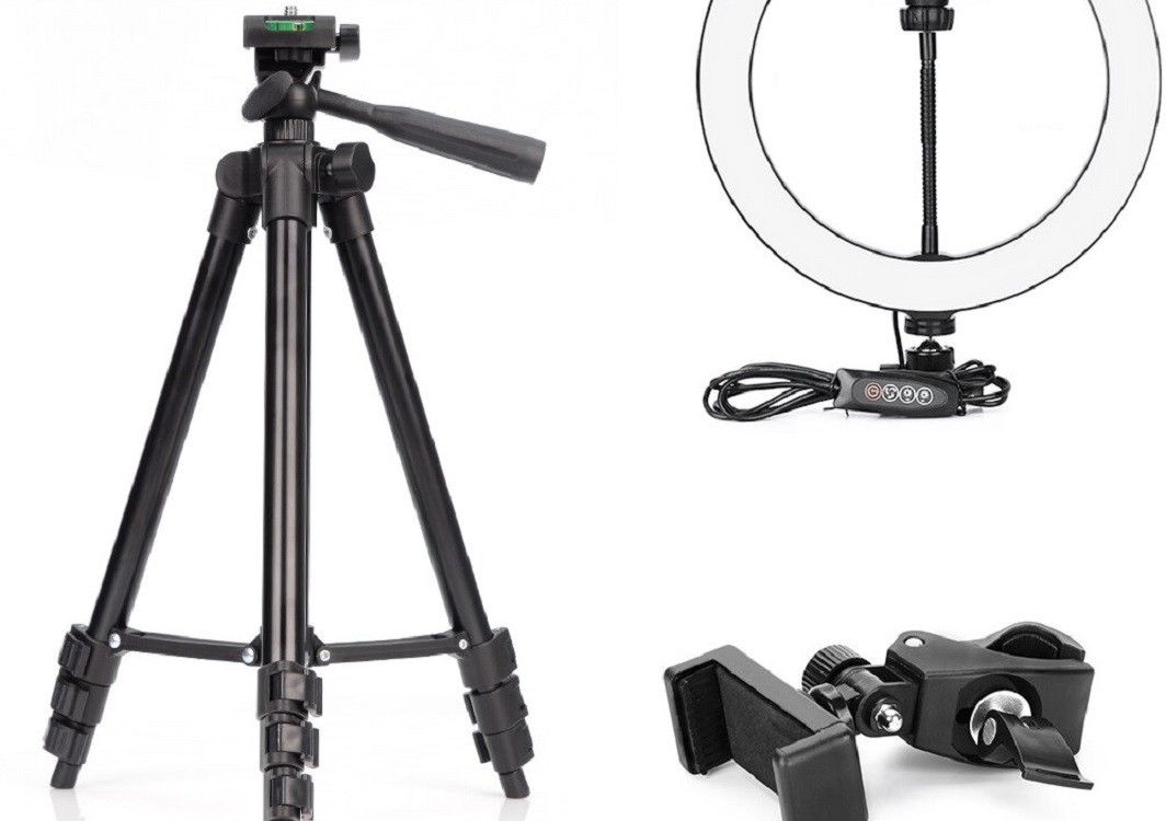 Contenuto della confezione: 1x luce, 1x treppiede, 1x supporto per telefono