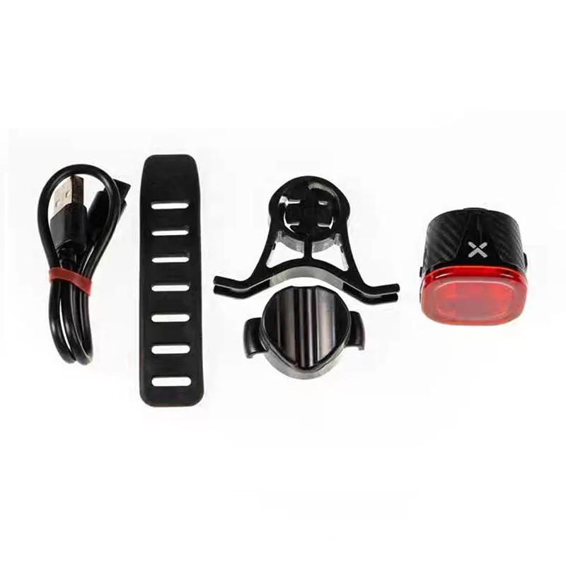Luce posteriore per bicicletta compatta in carbonio con impermeabilità IPX6, ricarica USB-C e funzione di accensione e spegnimento automatici basata sul movimento. Descrizione completa