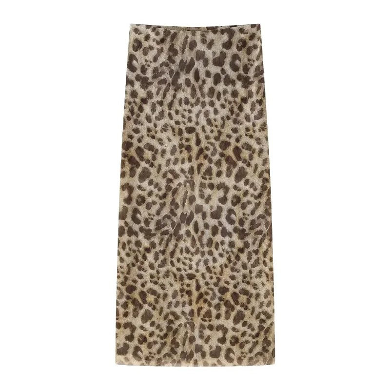 Lunga elegante gonna midi leopardata per donne Gonna animale stilosa in vita Gonna fluida a stampa per autunno primavera sera città