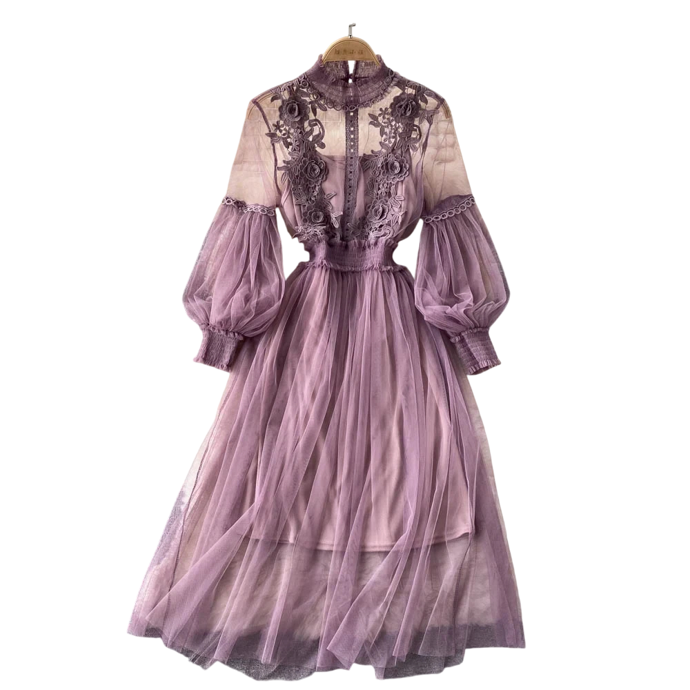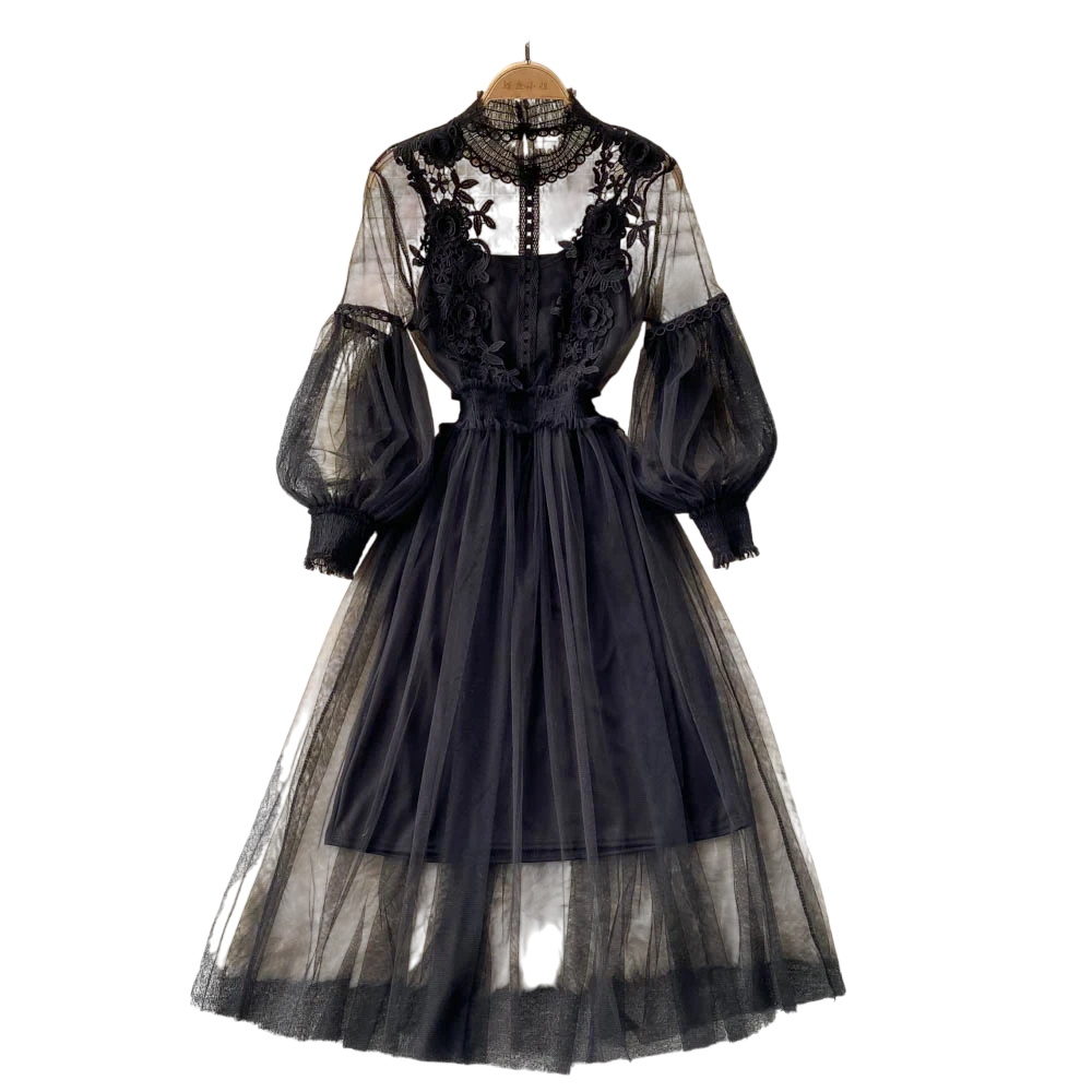 • Design a due pezzi: abito ricamato superiore con maniche lunghe e abito a spalline separato come strato inferiore