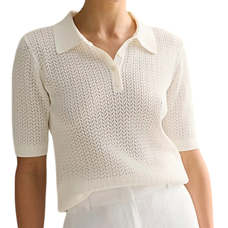 Maglietta elegante con colletto e delicato motivo all'uncinetto, ideale per l'estate. Materiale leggero, taglio stiloso e design traspirante per il massimo comfort. Descrizione completa