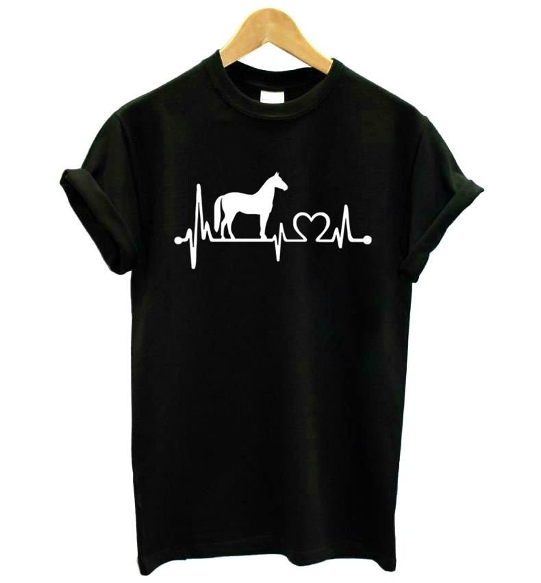 Krásné dámské tričko pro všechny milovníky koní. Tričko má na přední straně potisk tepu a koně.