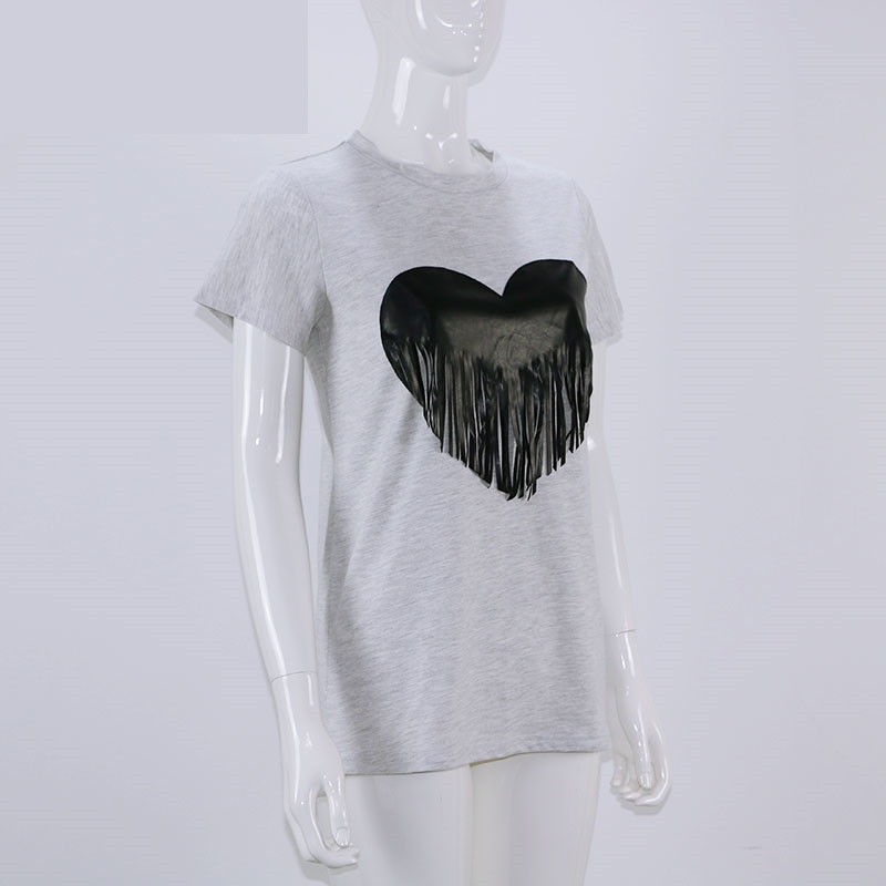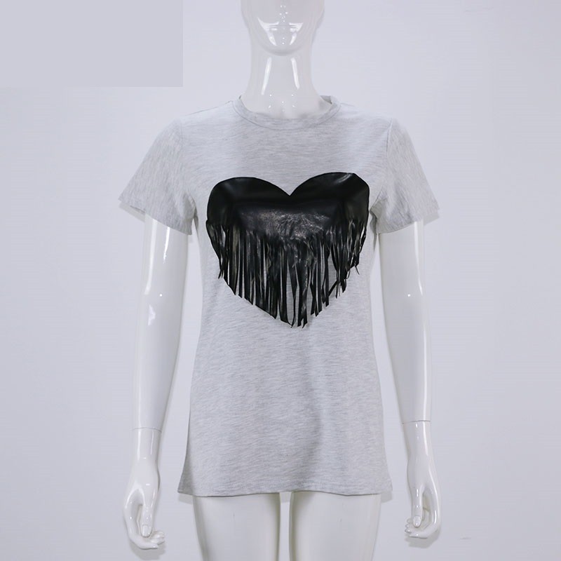 Maglietta da donna con stampa cuore e frange