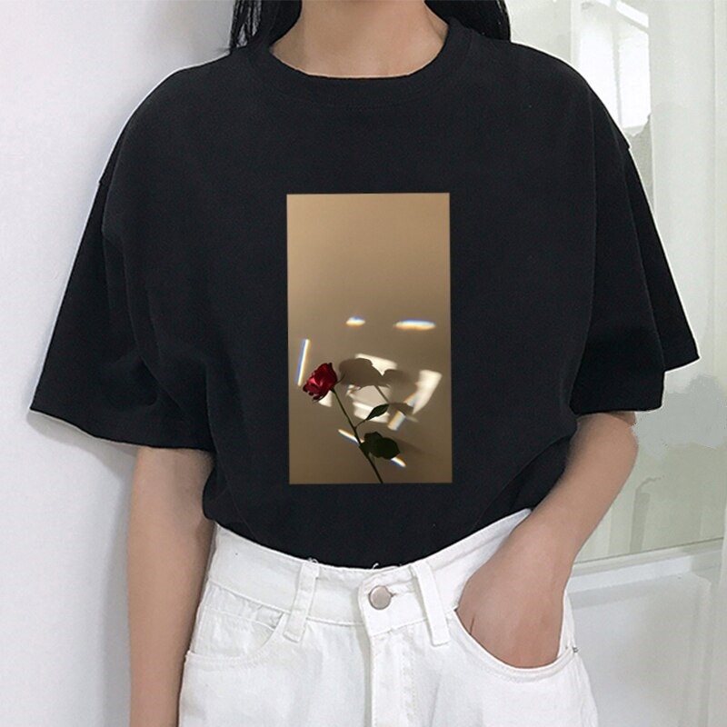 Maglietta da donna con stampa di rosa B402