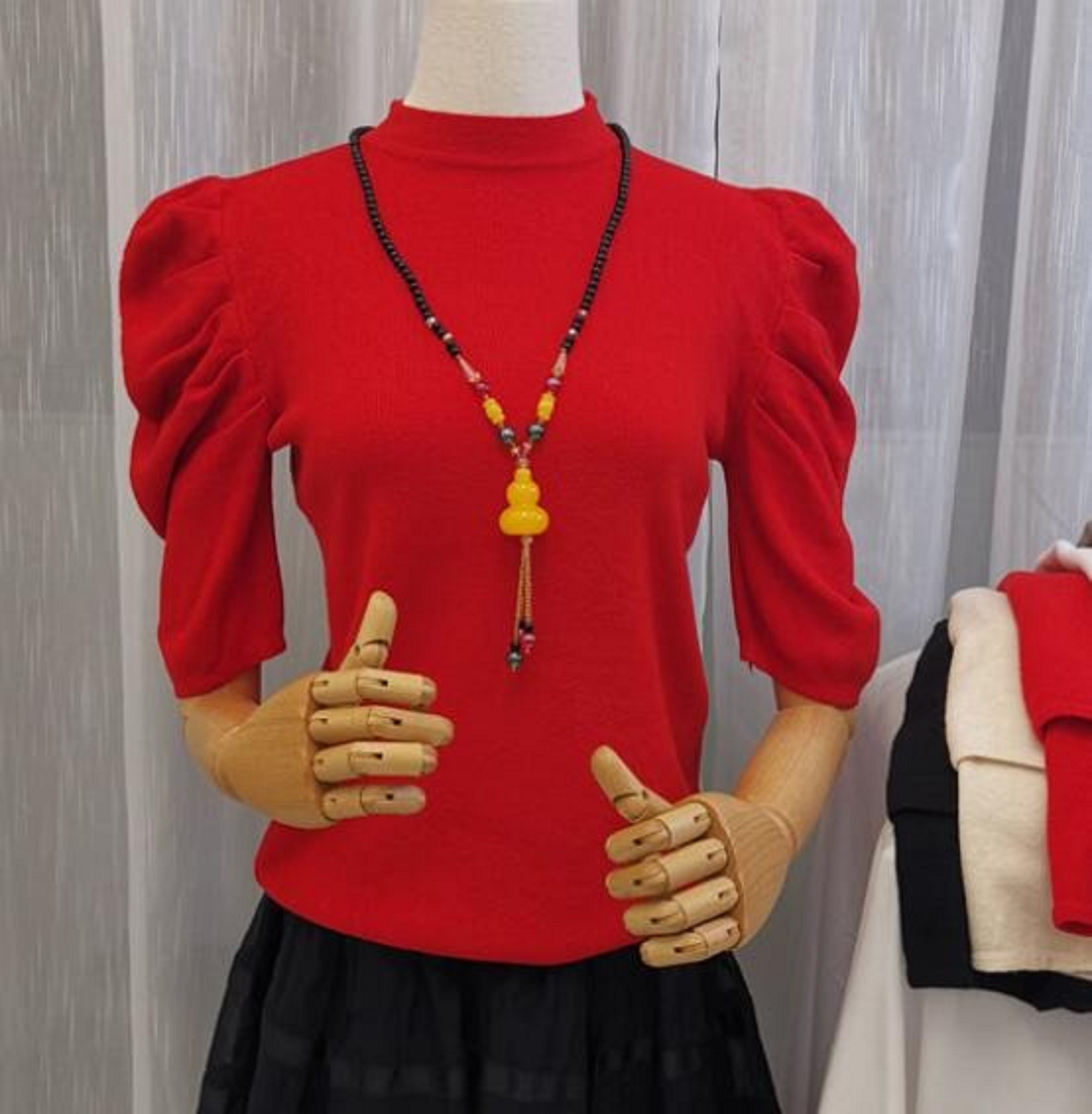 Maglietta da donna lavorata a maglia con maniche arricciate