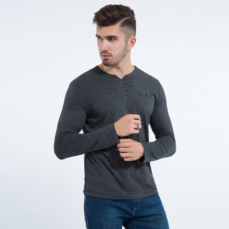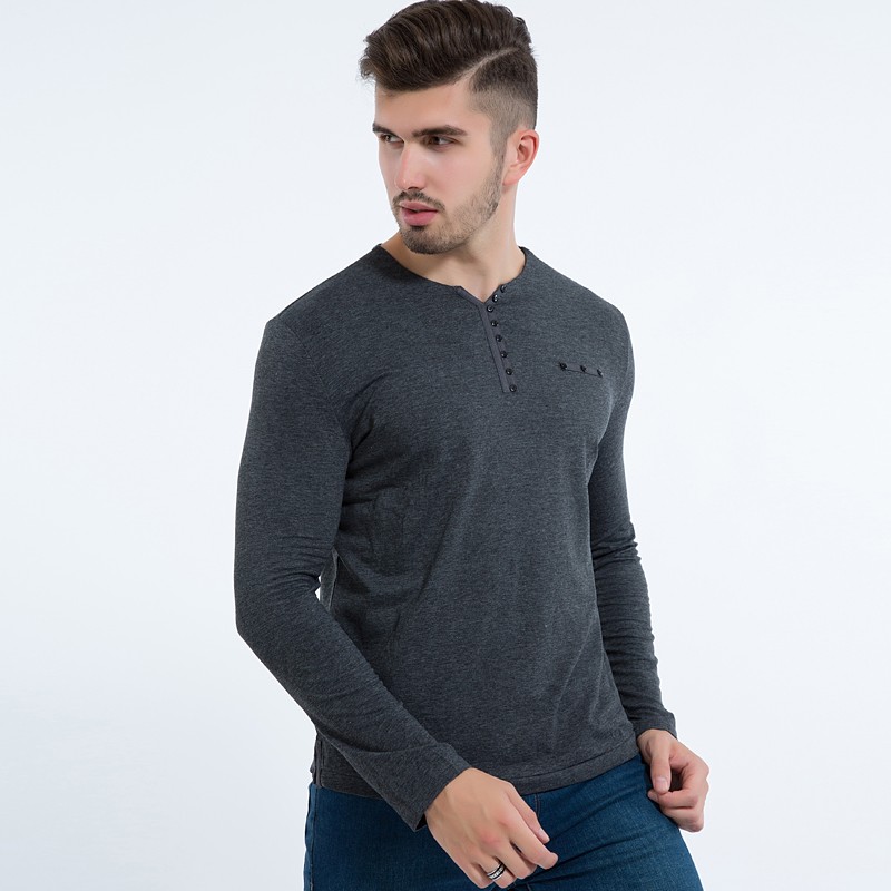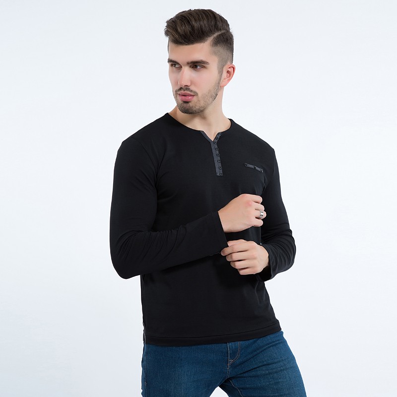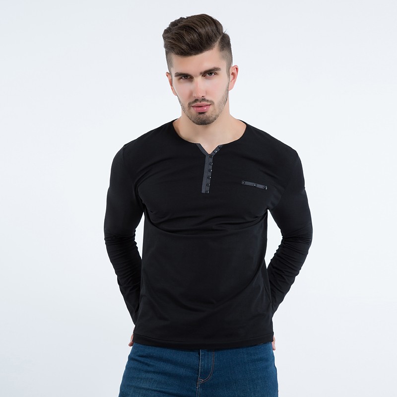 La maglietta da uomo a maniche lunghe con dettagli interessanti colpirà ogni uomo.