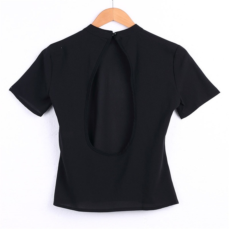Maglietta nera da donna con schiena scoperta