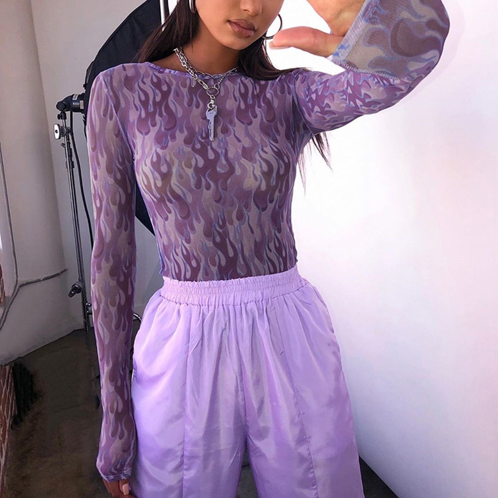 Maglietta trasparente da donna viola