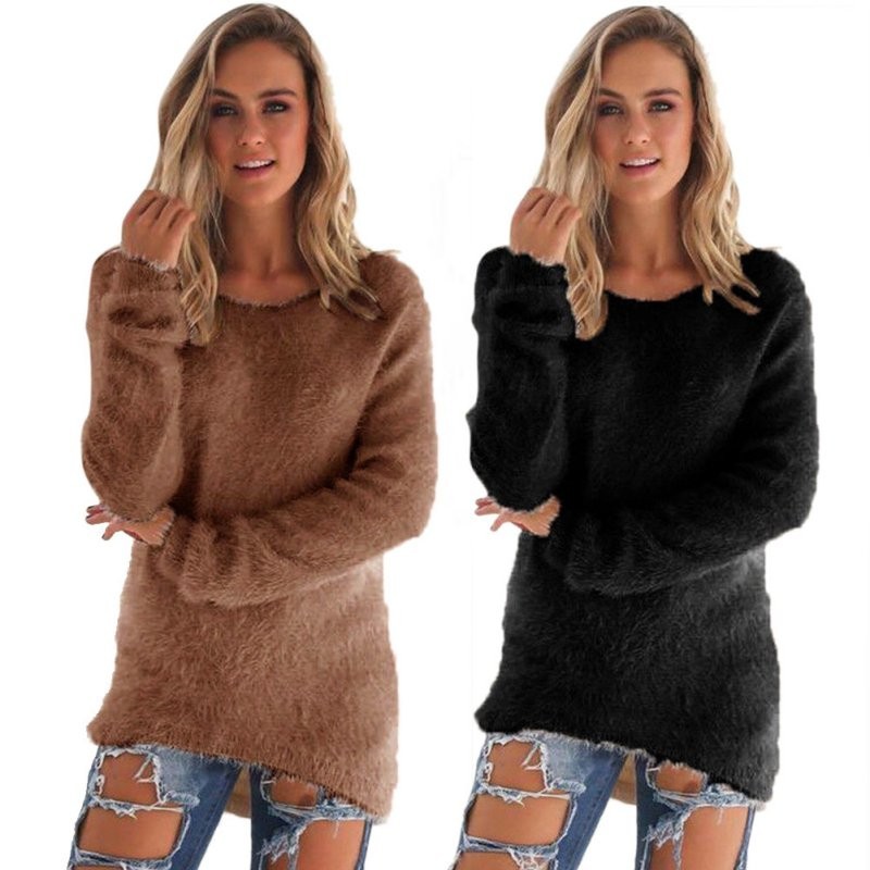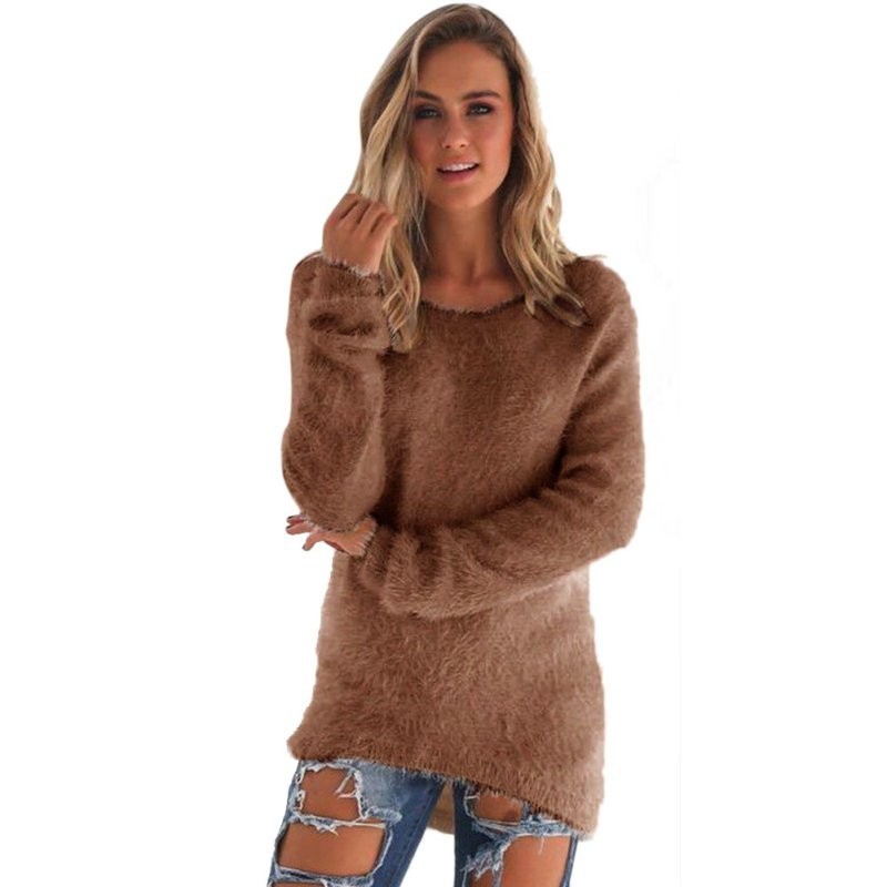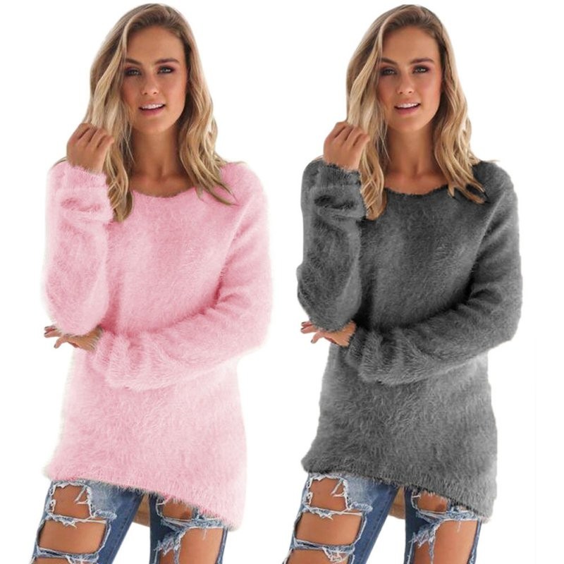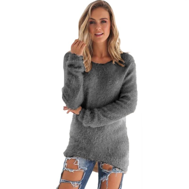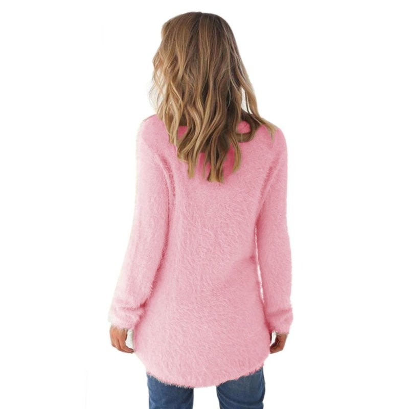 Maglione peloso da donna realizzato in un materiale molto comodo che arricchirà perfettamente il tuo guardaroba.