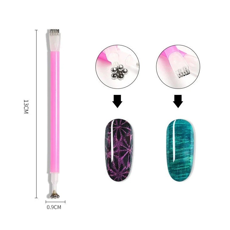 Vuoi portare la tua manicure a un nuovo livello e creare un moderno effetto Cat Eye 3D? Con questo magnete per unghie otterrai design incantevoli con effetto di profondità che attireranno l'attenzione. Il suo forte campo magnetico consente un lavoro preciso con gel e smalti magnetici, permettendoti di creare facilmente vari modelli ed effetti. Lo strumento è leggero, compatto e facile da usare sia in casa che in uno studio di unghie professionale.