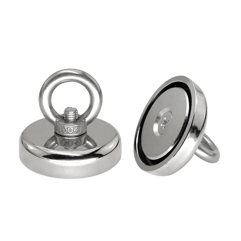 Se vuoi iniziare a cercare tesori nei laghi o nei fiumi, devi procurarti questo magnete da pesca. Grazie alla forza di trazione massima di 32 kg, puoi facilmente recuperare oggetti in ferro e acciaio. Il magnete ha anche un occhio di sospensione per legare la corda di recupero.