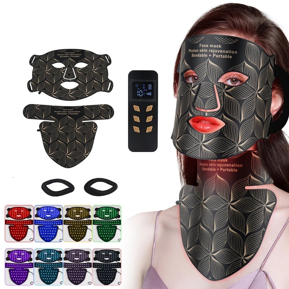 Maschera in Silicone Infrarossa con Luce Rossa e Lampada per Collo 8 Colori Terapia LED Ringiovanimento della Pelle IPX7 Impermeabile Controllo LCD Timer Batteria Ricaricabile