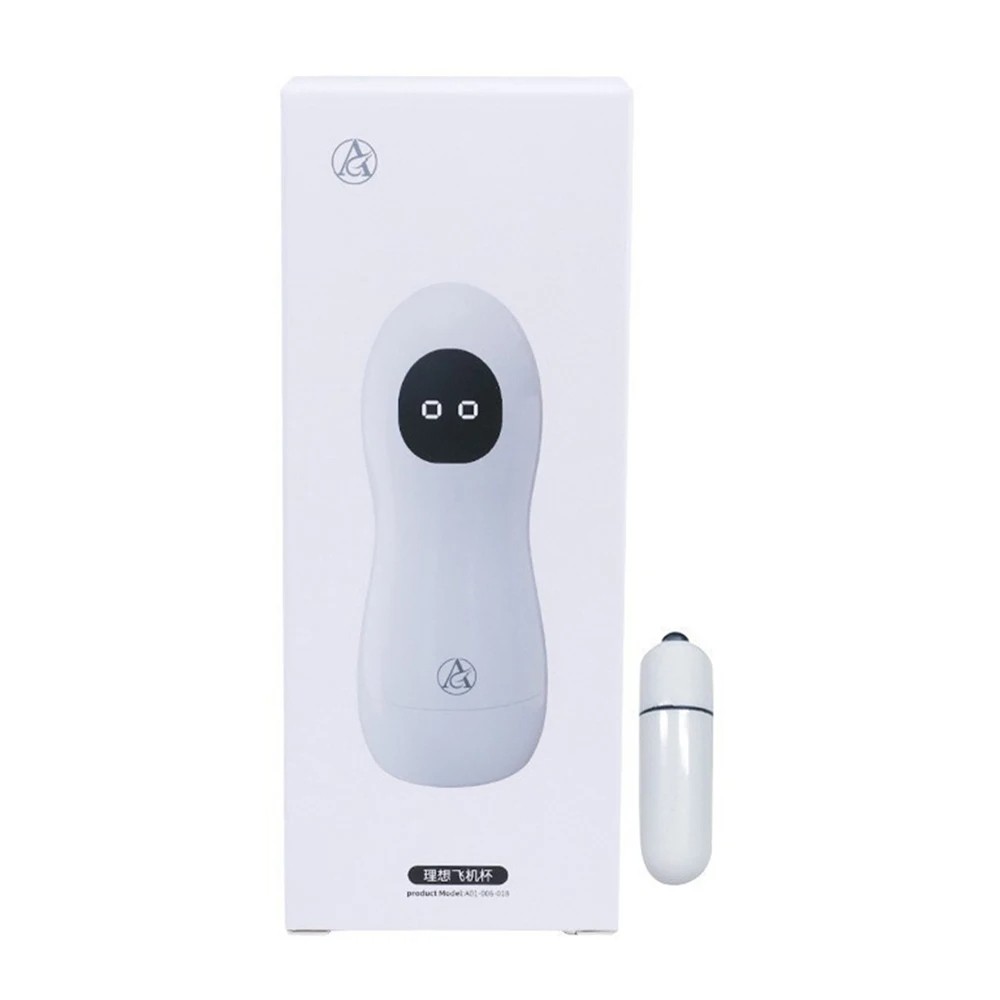 Masturbatore maschile con inserto estraibile, display LCD a forma di occhi e uovo vibrante, confezione discreta