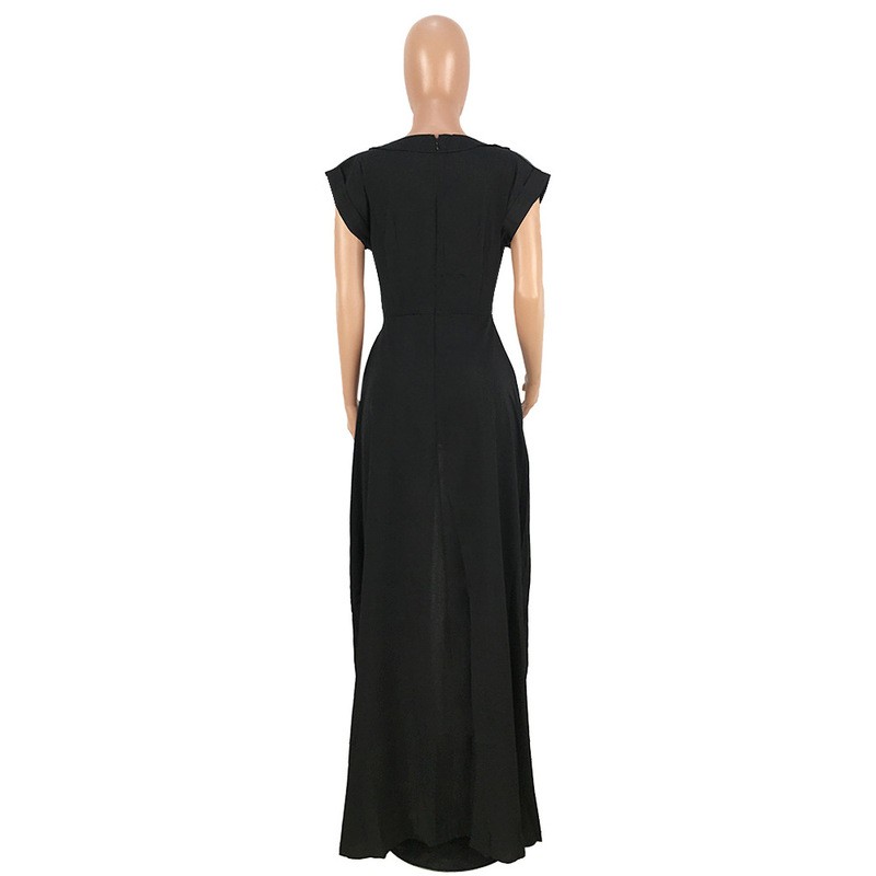 Abito maxi da donna con maniche corte, davanti con alto spacco.