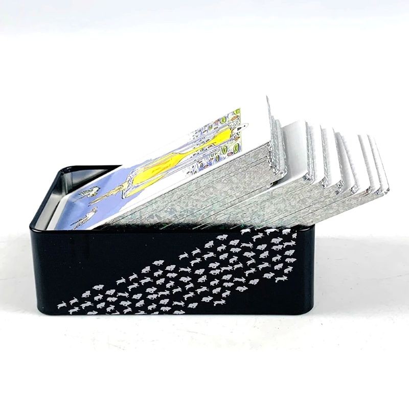 Questo set di tarocchi è adatto a chiunque cerchi un mazzo tradizionale con una conservazione pratica. La scatola di latta assicura protezione durante il trasporto. Il numero standard di carte consente un ampio utilizzo durante la lettura. Le dimensioni compatte facilitano la manipolazione e il lavoro quotidiano con le carte.