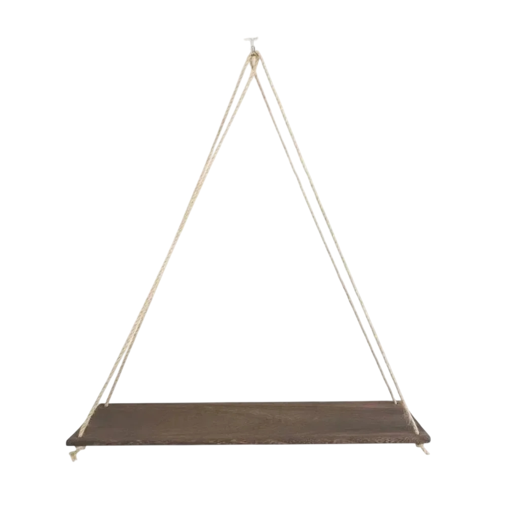 Questa mensola sospesa in legno è una soluzione pratica e decorativa per organizzare lo spazio. Crea un'atmosfera accogliente e offre allo stesso tempo un posto per esporre oggetti preferiti. Grazie al materiale naturale e al design semplice, si integra facilmente in vari stili di arredamento.