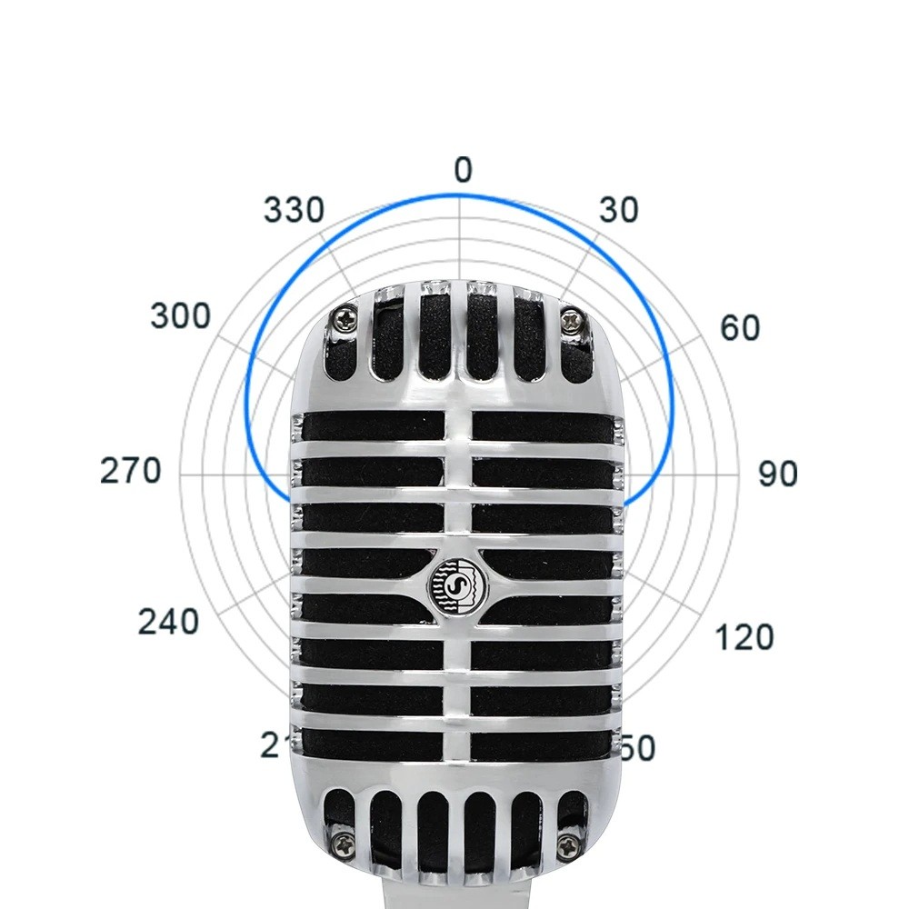 Microfono retrò con corpo in metallo e registrazione direzionale del suono, ideale per canto sul palco, registrazione della parola parlata e registrazione di podcast. Descrizione completa