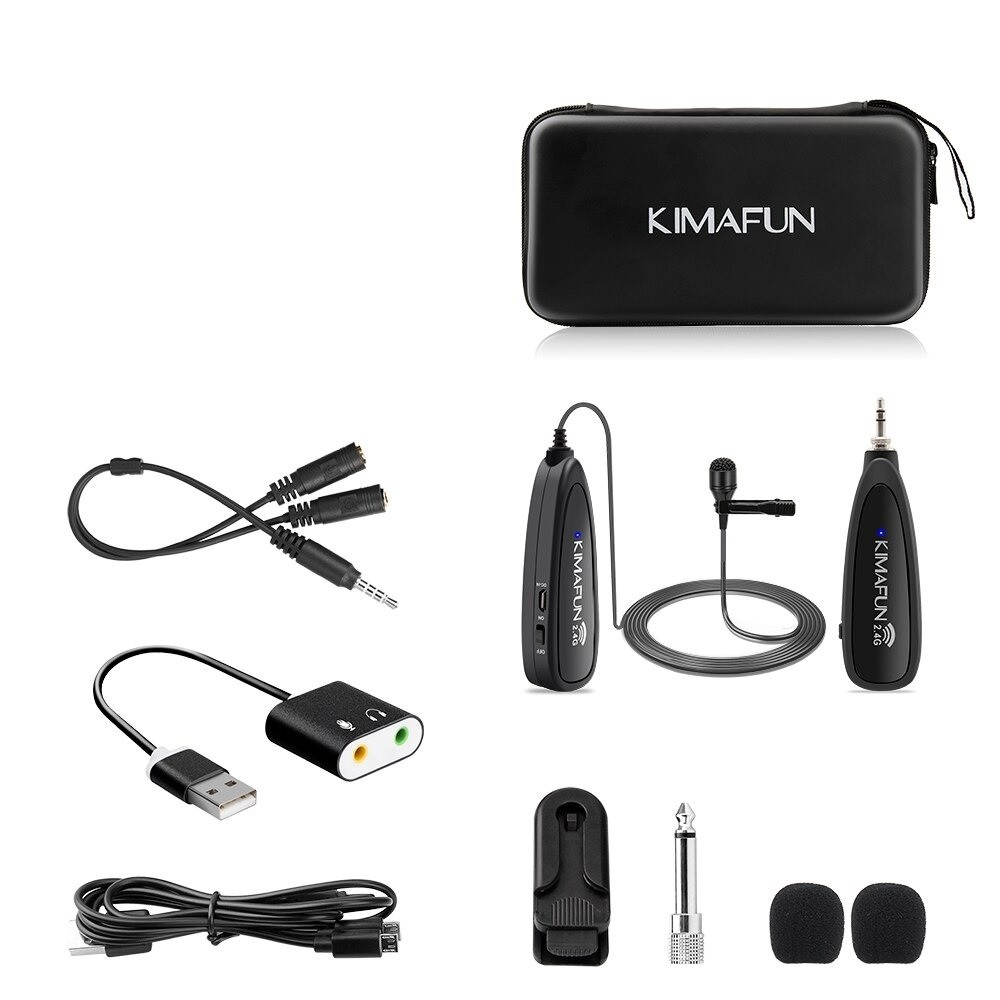 Contenuto della confezione: 1x microfono, 1x ricevitore, 1x cavo USB di ricarica, 1x adattatore jack da 3,5 mm, 1x adattatore USB a 2x jack da 3,5 mm