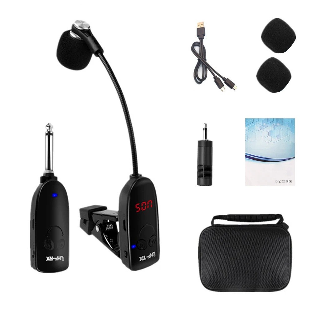 Microfono wireless per sassofono con trasmettitore e ricevitore da 6,35 mm Portata lunga Ricarica USB Custodia inclusa