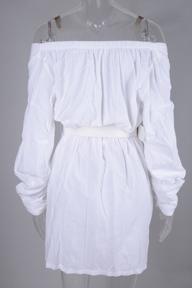 Abiti mini da donna con maniche lunghe e spalle scoperte.