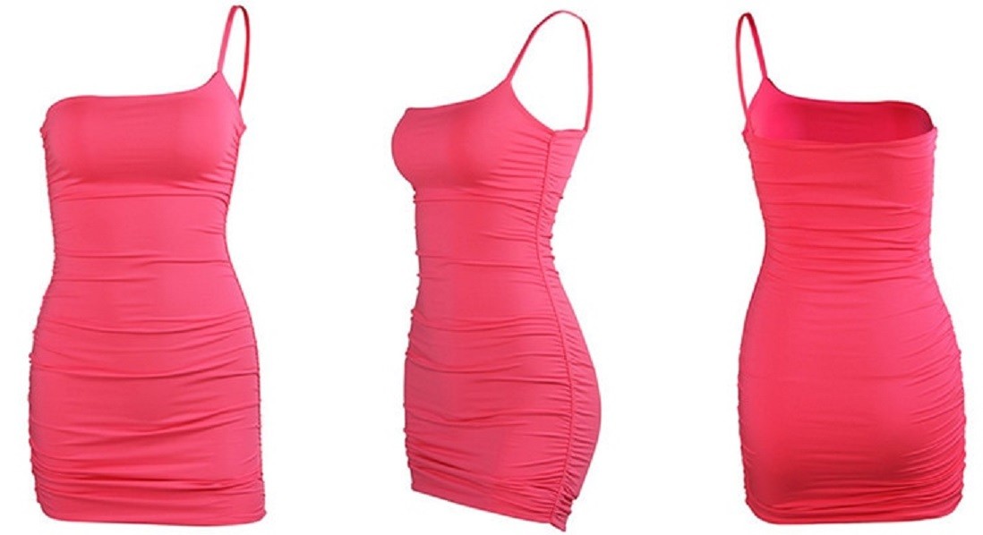 Abito mini a spalla unica in colori vivaci.