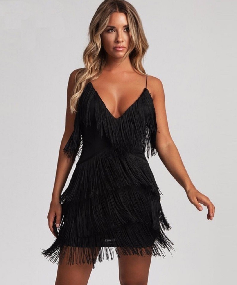 Mini abito sexy con frange