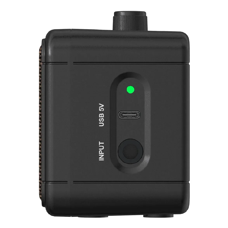 Mini amplificatore per chitarra wireless con Bluetooth, controllo Gain/Tone/Volume, jack da 3,5mm per cuffie e ricarica USB-C 12,5 x 6,5 x 9 cm