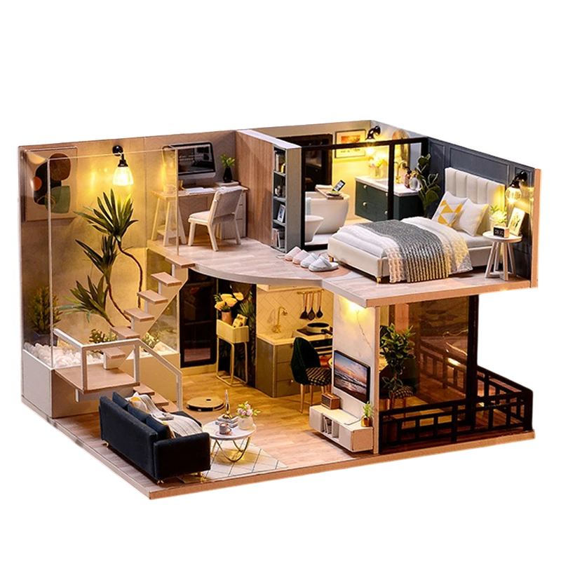 • Contenuto della confezione: 1x kit della casa (24,5 x 19,5 x 16,1 cm), mobili, copertura trasparente (senza colla e batterie)