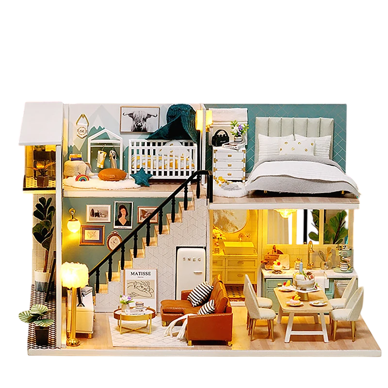 • Contenuto della confezione: 1x set per assemblare la casa in legno, mobili, copertura protettiva (senza colla e batterie)