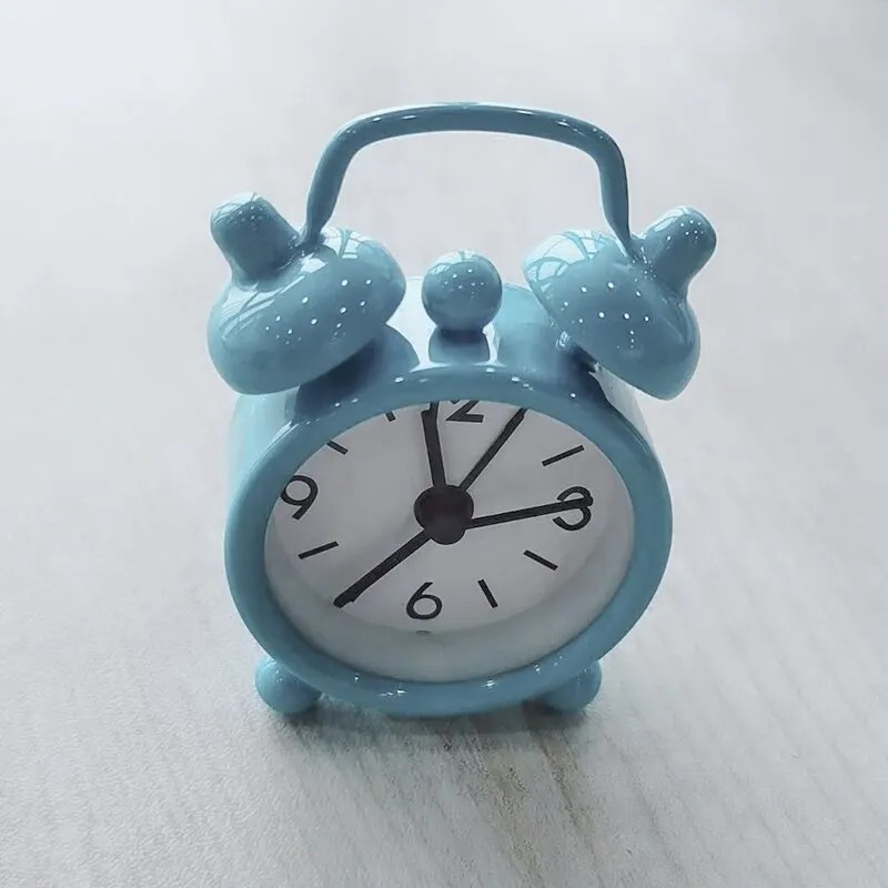 Sveglia mini creativa con corpo in metallo e aspetto classico. Alimentata da batteria a bottone AG13 (inclusa), ideale per viaggi e come accessorio di stile. Descrizione completa