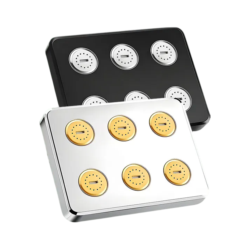 Questa mini testa di doccia è progettata per massime prestazioni in un corpo compatto. Grazie alla struttura rotante a 360°, puoi facilmente adattare la direzione del flusso d'acqua secondo necessità. La testa offre un intenso effetto pioggia ad alta pressione e allo stesso tempo risparmia acqua senza compromettere il comfort. Connessione universale a 4 punti garantisce compatibilità con la maggior parte dei bracci doccia standard, e l'installazione è molto semplice – non è necessario alcun attrezzo. Design quadrato e lavorazione robusta contribuiscono alla lunga durata e all'aspetto moderno del tuo bagno.