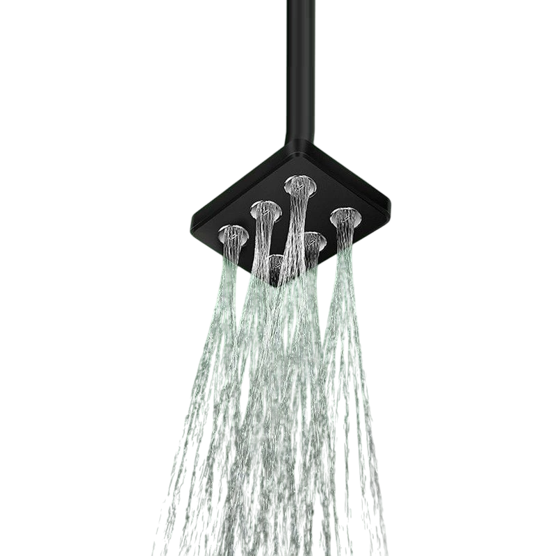 Doccia compatta ad alta pressione con rotazione a 360°, design quadrato, risparmio d'acqua e facile installazione su qualsiasi braccio doccia standard. Descrizione completa